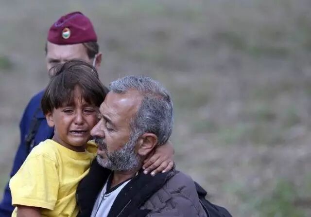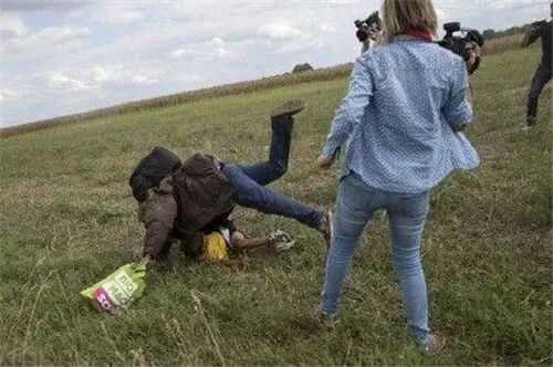 匈牙利女记者绊倒叙利亚难民,看到了那个父亲的眼神,听到孩子的哭声,好难受。愿世界永远和平,人人都能开心的和家人待在一起。