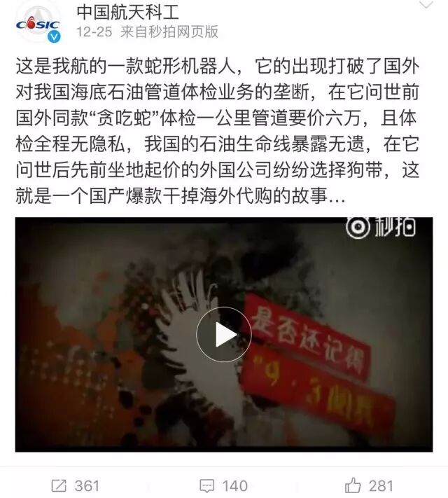 事情是这样的,前些天@中国航天科工发布了一条微博,微博还配上了一段航天科工的格子衫们对某款设备进行现场测试的真人秀视频。