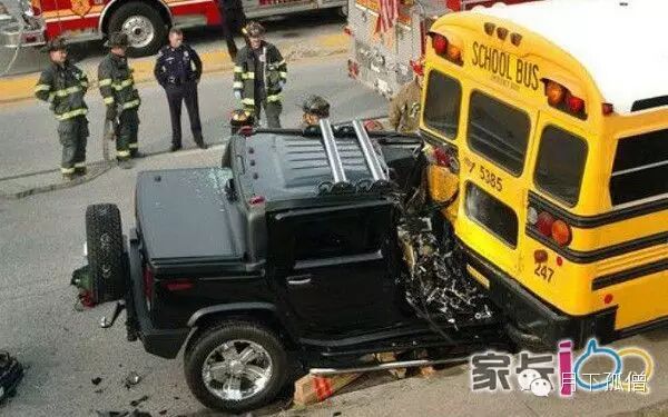 还有这张美国校车撞悍马