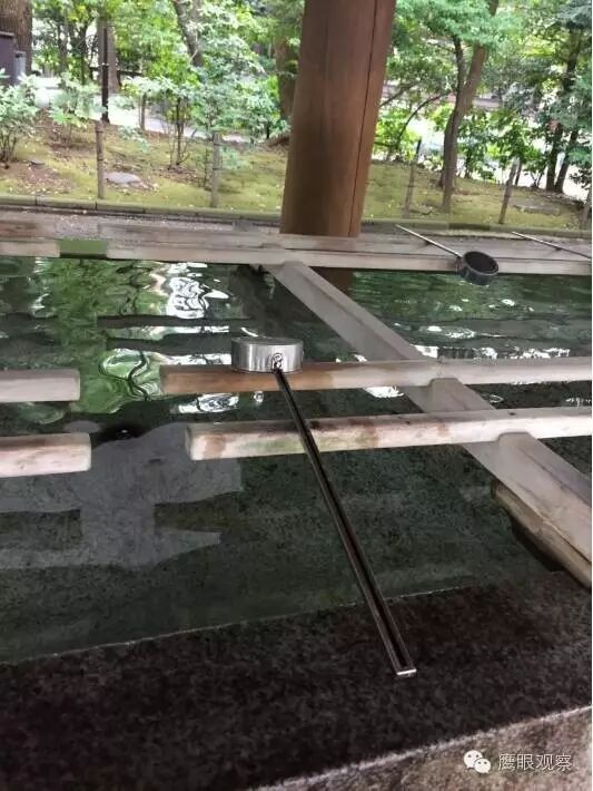 ▲神社和寺庙门口都有水池,参拜前要先舀水漱口净手