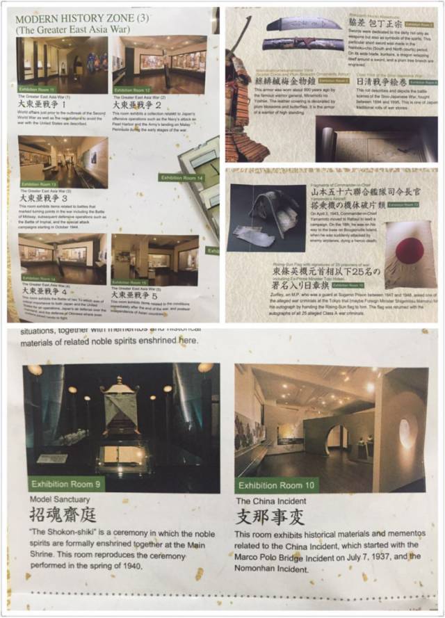 ▲游就馆宣传页上的介绍,馆内展出的几乎全是日本对外战争的“辉煌”历史,侵华战争被轻描淡写地翻译成“incident”