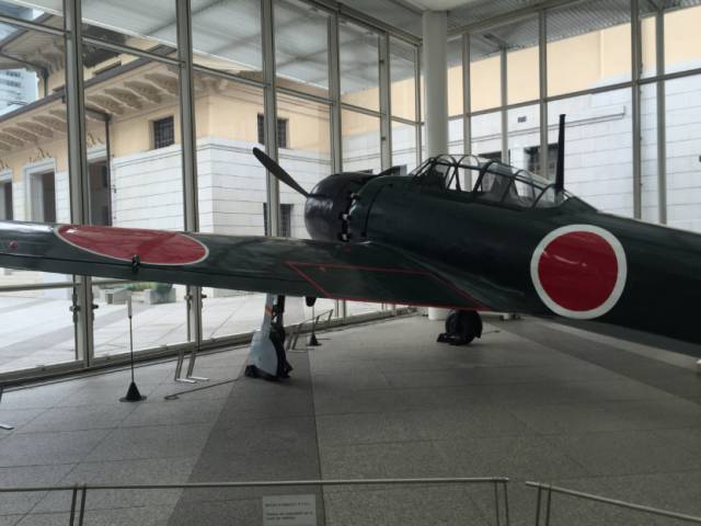 靖国神社内的游就馆,目前是展示战争和日本军人遗物的军事博物馆,一进门就能看到一架显眼的零式战斗机。
