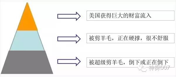 第五,美国对世界经济体系三个层级的划分、分工和利益传送的设计,也让美国不断受益,而对其他国家来说则是平时的利益纳贡,和不定期被血腥掠夺。