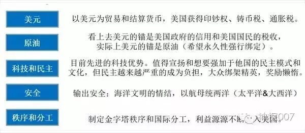 美国依靠什么统治世界?——军事/科技/文化/美元。美国正是通过军事/科技/文化/美元这四样东西制定有利于自己的经济规则,从而建立能够被美国掌控的世界经济秩序。