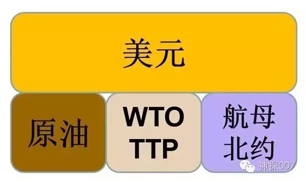 美国的全球经济秩序制度的代表是老版本的WTO和新版本的TTP,不管是WTO还是TTP都是在美国领导下各国分工协调、贸易互动的规则。