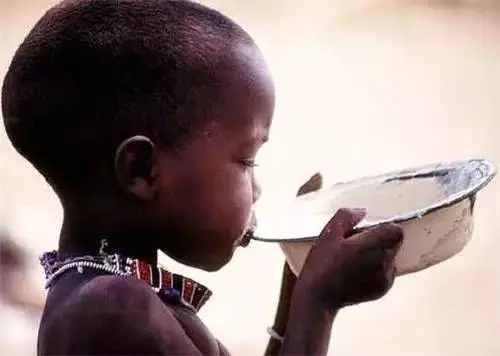 ▲ 这是一位骨瘦如柴的非洲的小女孩抱着一只废弃的碗喝水的照片。百度搜索中非共和国,你会发现有些惨不忍睹的“人吃人”镜头不忍直视,你能想象人的肢体被当做牲畜肉食么?选来选去,这张算是较为“含蓄”的照片了。