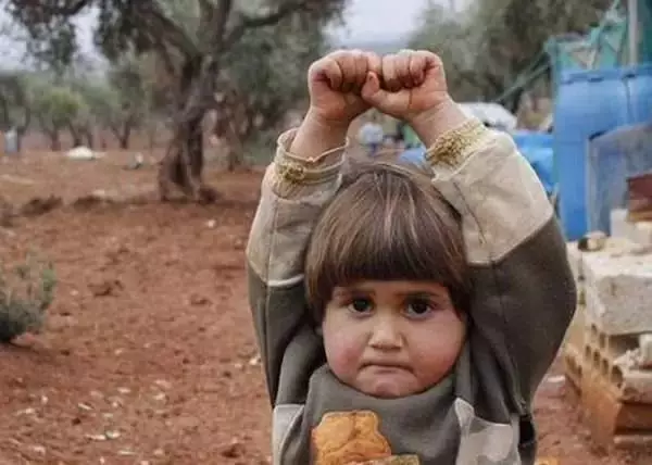 ▲ 这位叙利亚小孩当时正在被记者抓拍照片,不经意的一个抬手按快门的动作,被小朋友误认为是举枪袭击而举起双手作投降状。这难道不会有童年阴影吗?他们是无辜的啊!